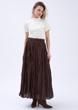 Crush Vual Maxi Etek - Astarlı - 100CM Kahve
