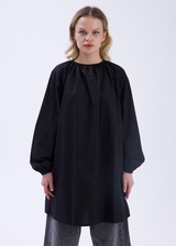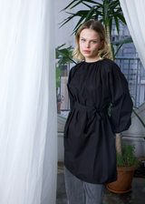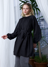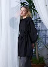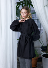 Bel Bağcıklı Balon Kol Gömlek Siyah