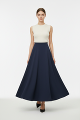 Lina Viskon Kloş Etek, akışkan viskon-pamuk dokusu ve zarif kloş kesimiyle rahatlığı ve şıklığı bir arada sunar. Yüksek bel formu bedeni güzelce sararken, dökümlü yapısı doğal bir hareket sağlar. Dört mevsim kullanılabilir ve her stile kolayca uyum sağlar