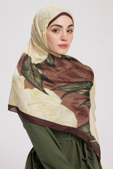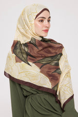 Şakayık Desen Soft Bambu Şal Sarı Kahve
