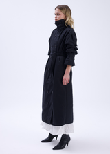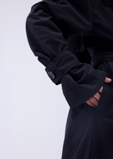 Dik yaka görünümü, rüzgarlık detayı, apoletleri, bel ve kol kemerleri ile klasik trençkot duruşunu daha modern ve daha premium bir seviyeye taşıyor.